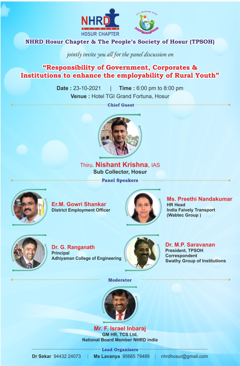 An initiative of NHRD Hosur Chapter with TPSOH