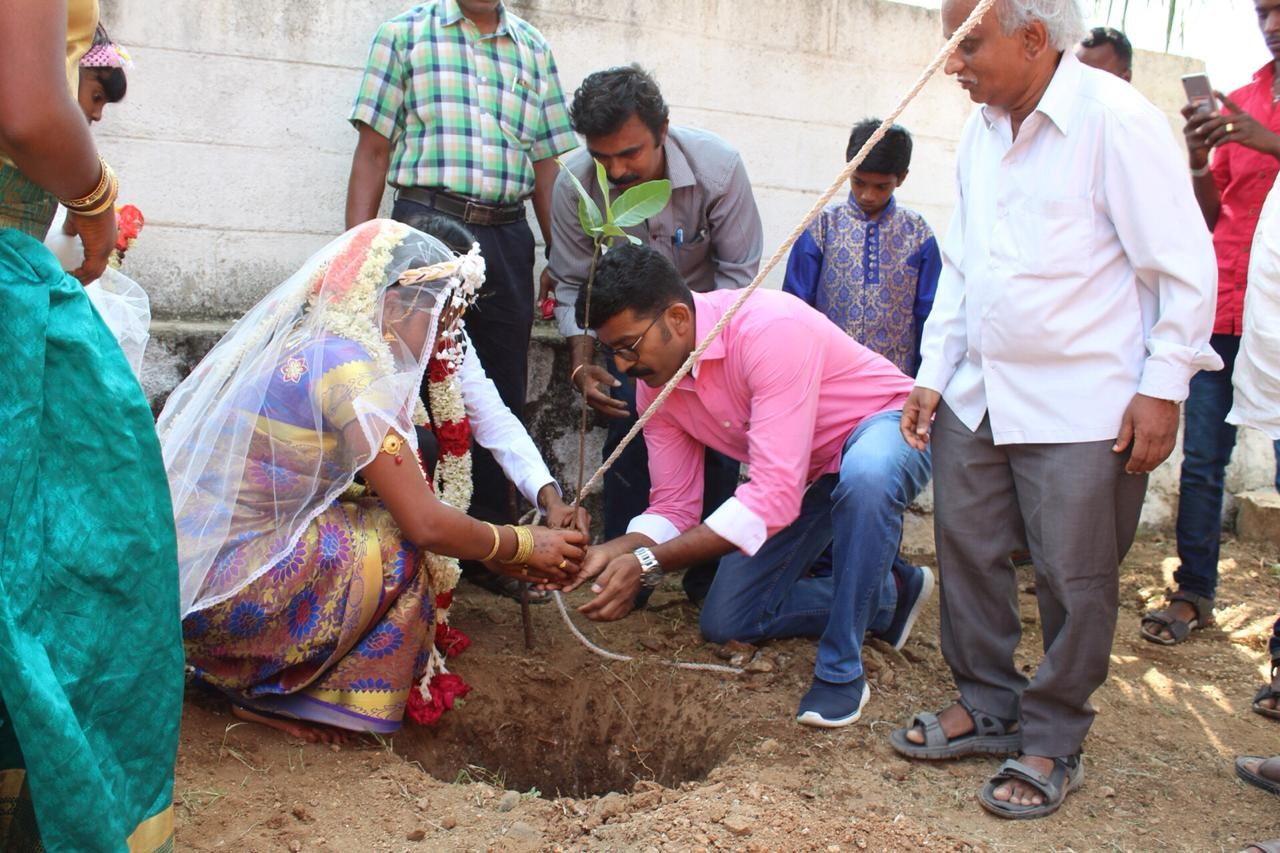 TPSOH TREES CHAIRMAN Thomas helping a just married couple to plant a tree in the Church premises in the presence of M P Murugesh Pandian Joint Secretary