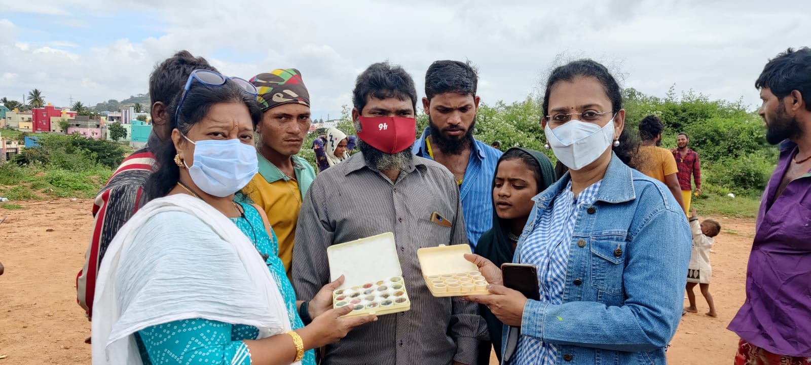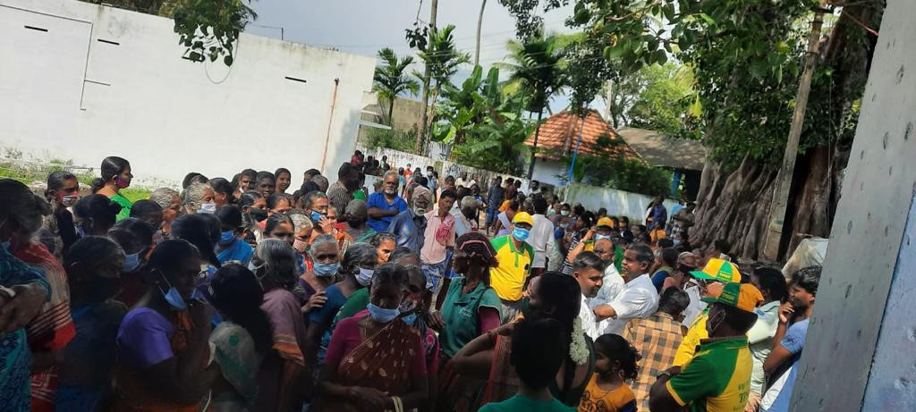 Relief materials being distributed to the people of Thirupathi Saram